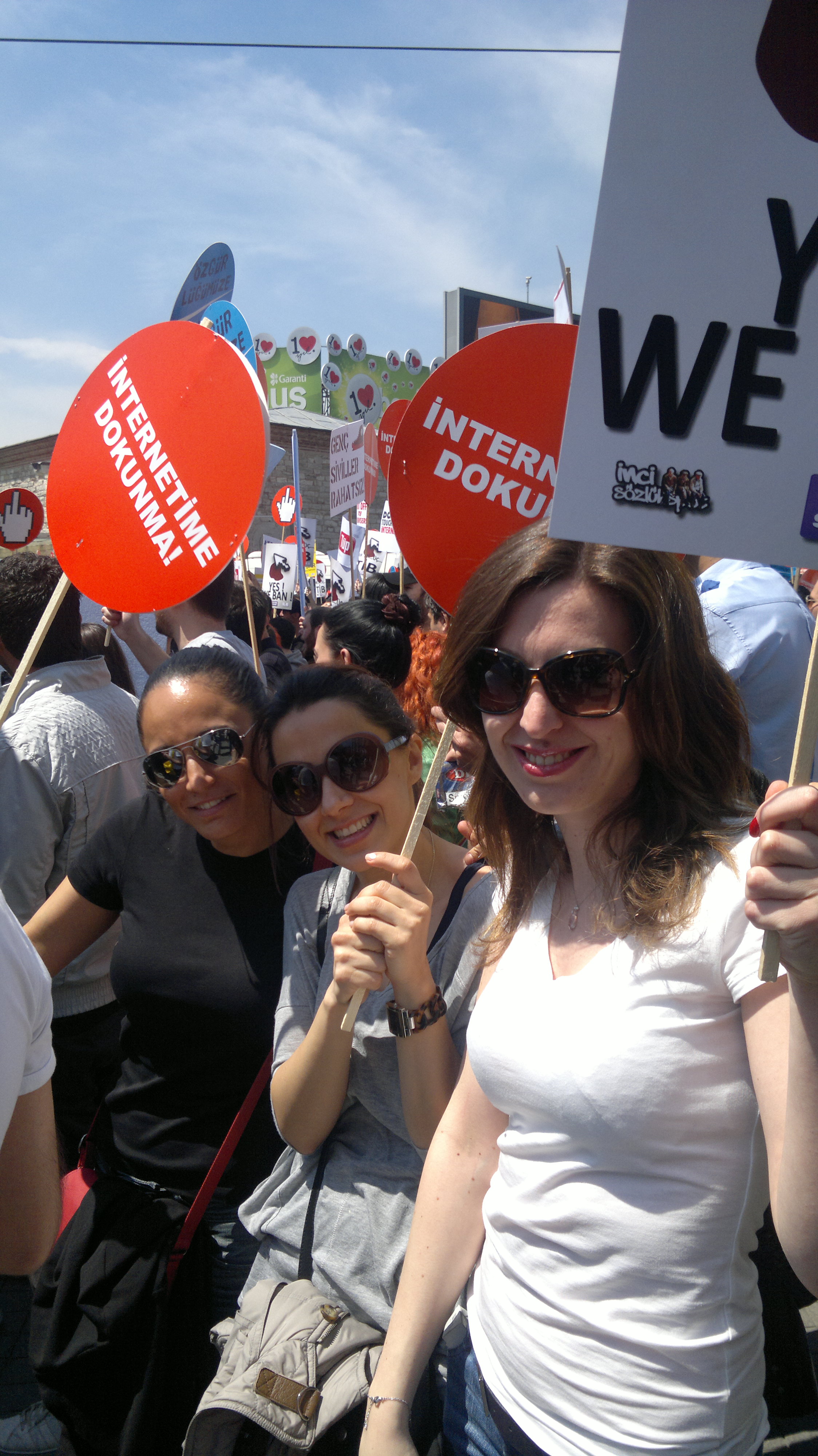 15 Mayıs’ta Türkiye’nin birçok kentinde olduğu gibi İstanbul’da da gerçekleştirilen “İnternetime Dokunma” yürüyüşüne, Bahçeşehir Üniversitesi Hukuk Fakültesi’nden arkadaşlarımla birlikte ben de katıldım. Taksim Meydanı’nda toplanan ve Tünel Meydanı’na kadar devam eden yürüyüşe çeşitli kaynaklara göre 30 ila 50 bin kişi katıldı. Katılımcıların çoğu genç internet kullanıcılarıydı ve kadın-erkek eşitliği de göze çarpıyordu.
