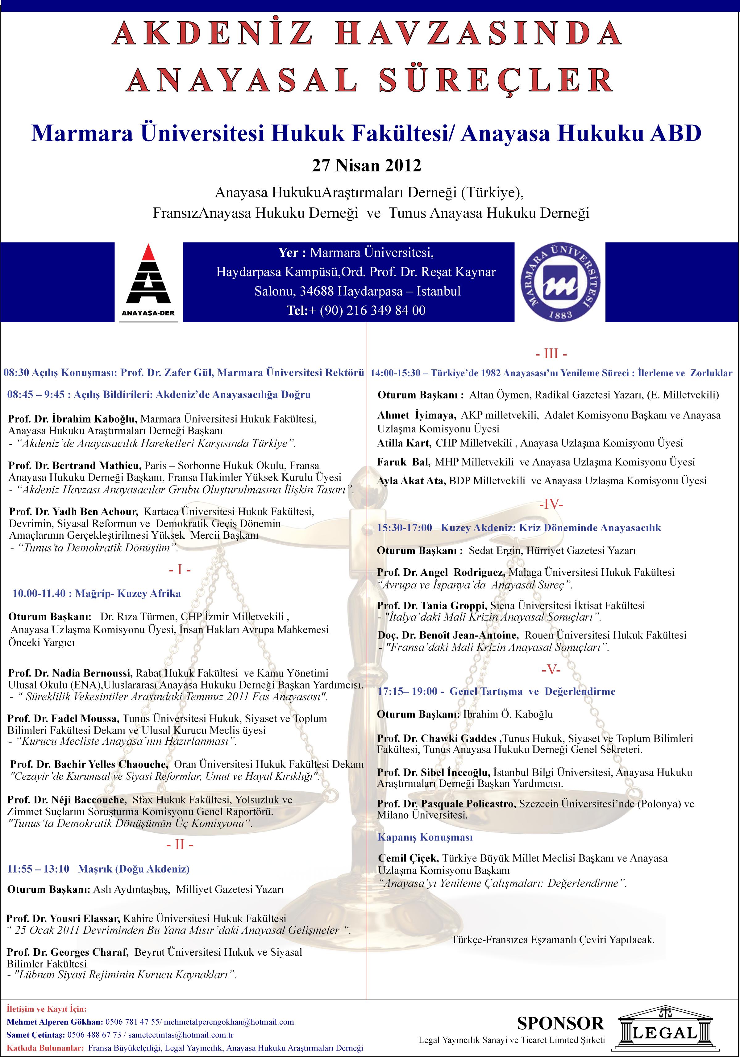 27 Nisan 2012 Cuma günü Marmara Üniversitesi’nin Haydarpaşa Kampüsü’ndeki Ord.Prof.Dr. Reşat Kaynar Salonu’nda gerçekleşecek konferansa Fransa Büyükelçiliği ve Legal Yayıncılık da katkıda bulunuyor.