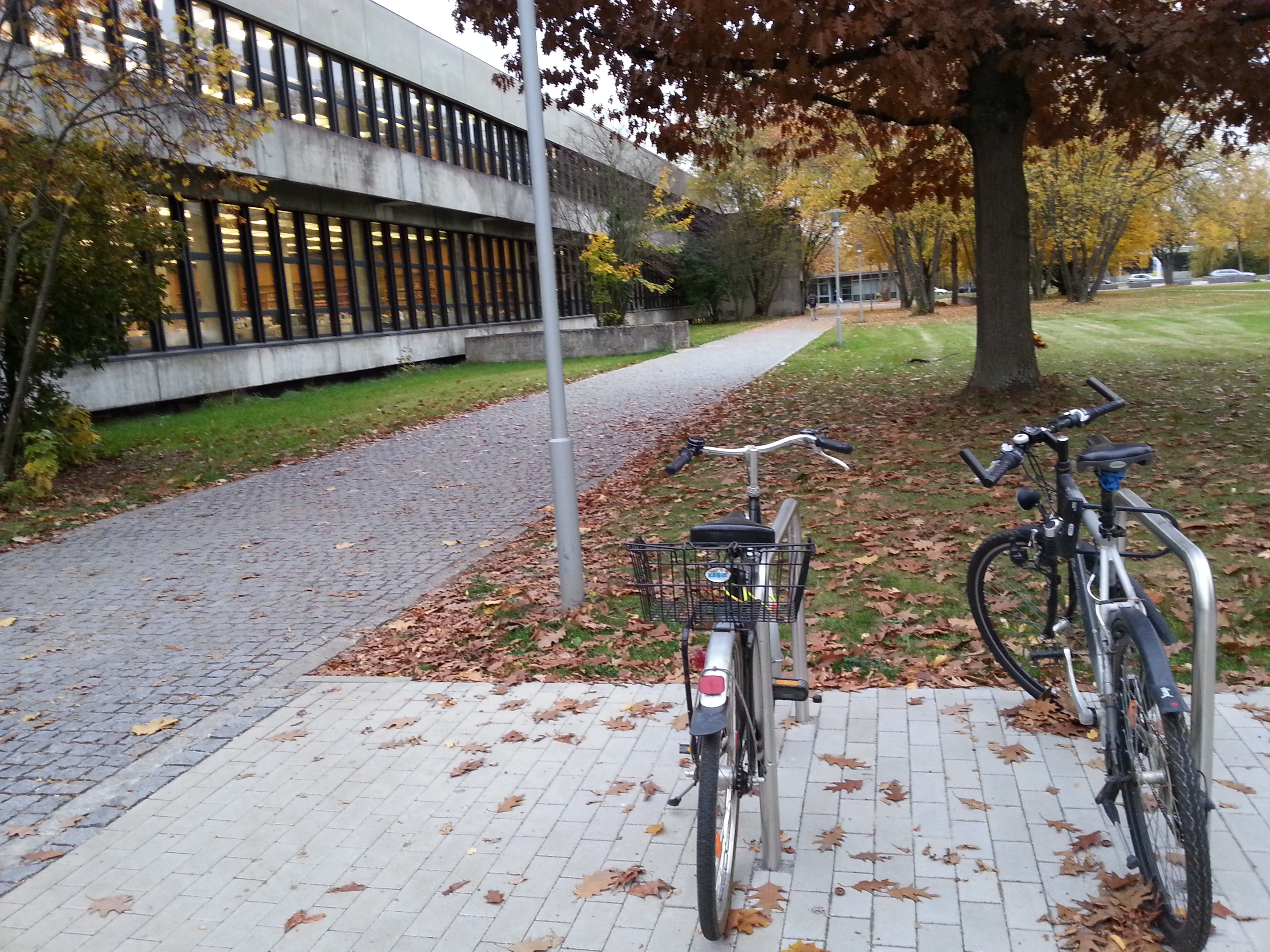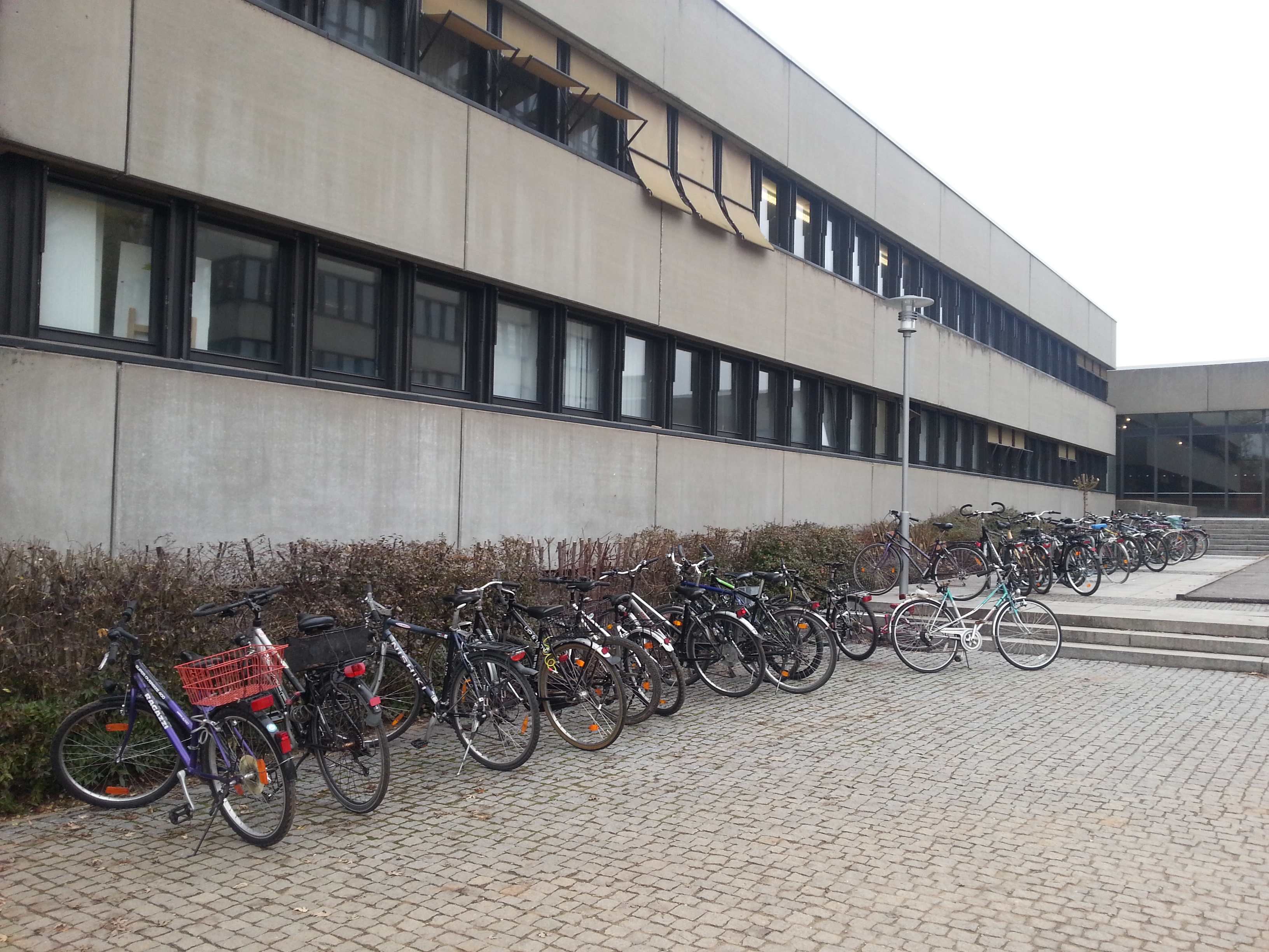 neredeyse kimse arabayla gelmiyor. Ulaşım ya kampüsün kapısına kadar gelen otobüsle ya da bisikletle sağlanıyor. Her yerde bisiklet parkı var ve neredeyse hiçbirinde yer yok.