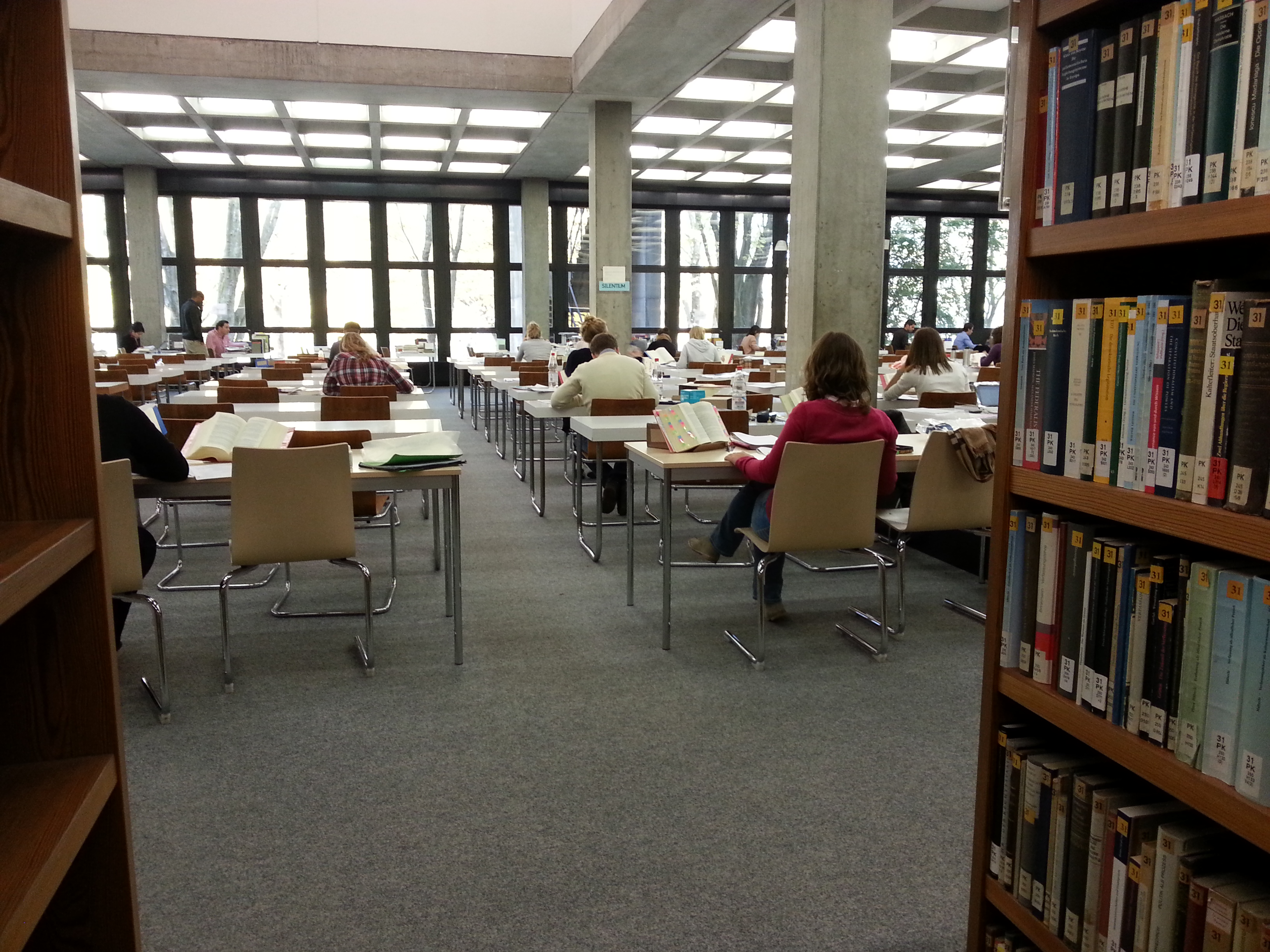 Ve gelelim kütüphanelere. Avrupa üniversiteleriyle Türkiye üniversiteleri arasındaki temel farkın kütüphaneler olduğunu düşünen bir insanım. Bu izlenimim Regensburg’da perçinlendi. Her fakültenin en az iki kütüphanesi var (En az! Örneğin Hukuk Fakültesi’nin üç kütüphanesi var.). Aslında Almancası “lesesaal”, yani okuma salonu. Nitekim bu salonlarda kitaplardan çok çalışma masaları yer kaplıyor. Her konuda çok sayıda kaynağa ulaşabildiğiniz bu salonlarda kitaplar raflara o kadar güzel bir sistemle yerleştirilmiş ki, hiç katalog
